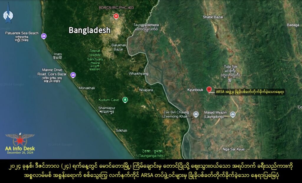 ရက္ခိုင်ပြည် မောင်တောမြို့နယ်မှာ ARSA က ခြုံခိုတိုက်ခိုက်တာကြောင့် အမျိုးသမီး ၁ ဦး သေဆုံးပြီး အများအပြား ထိခိုက်ဒဏ်ရာရရှိခဲ့တယ်လို့ အာရက္ခတပ်တော် (AA) က ဒီကနေ့ (ဒီဇင်ဘာ ၂၆ ရက်) မှာ သတင်းထုတ်ပြန်ပါတယ်။