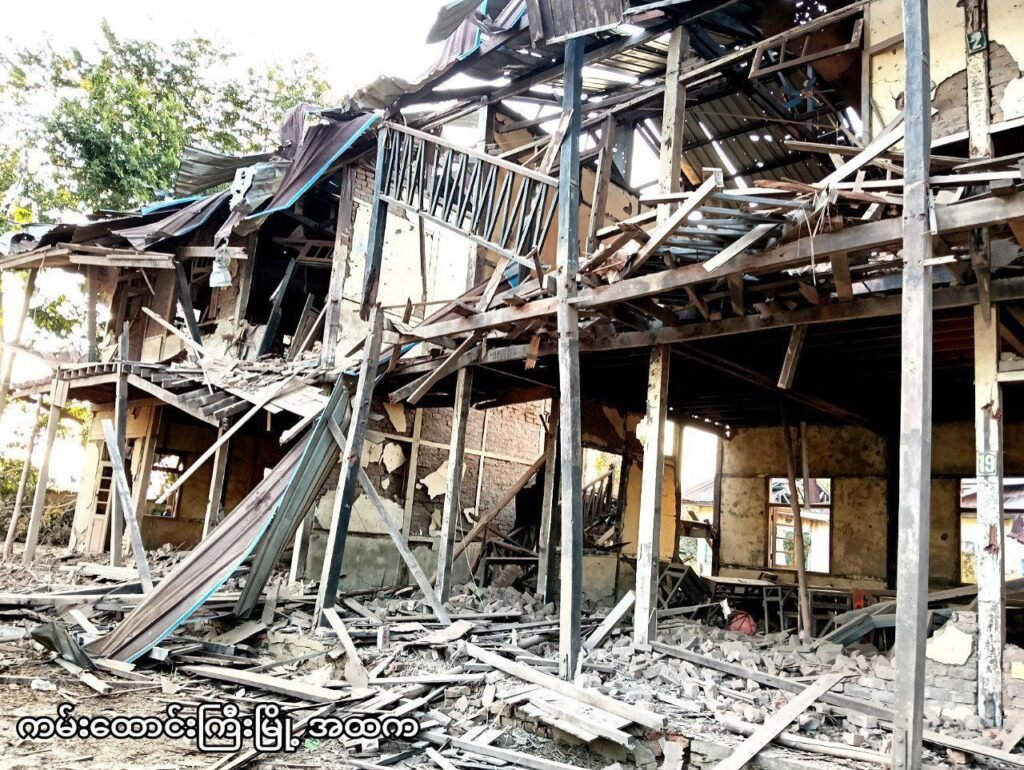 “ ဆေးရုံ နဲ့ စာသင်ကျောင်းကို လေယာဉ်နဲ့နှစ်ခါလာပြီး ဗုံးသုံးလုံးကြဲတယ်။ တစ်လုံးက အထက်တန်းကျောင်းကို တစ်လုံးနဲ့ ဆေးရုံကို နှစ်လုံးကျတယ်။ ဆေးရုံနားက အရီးတစ်ယောက်တော့ ဆုံးသွားတယ်” လို့ ကမ်းထောင်းကြီးမြို့ ဒေသခံတစ်ဦးက အာရက္ခတိုင်းမ်စ်ကို ပြောပါတယ်။