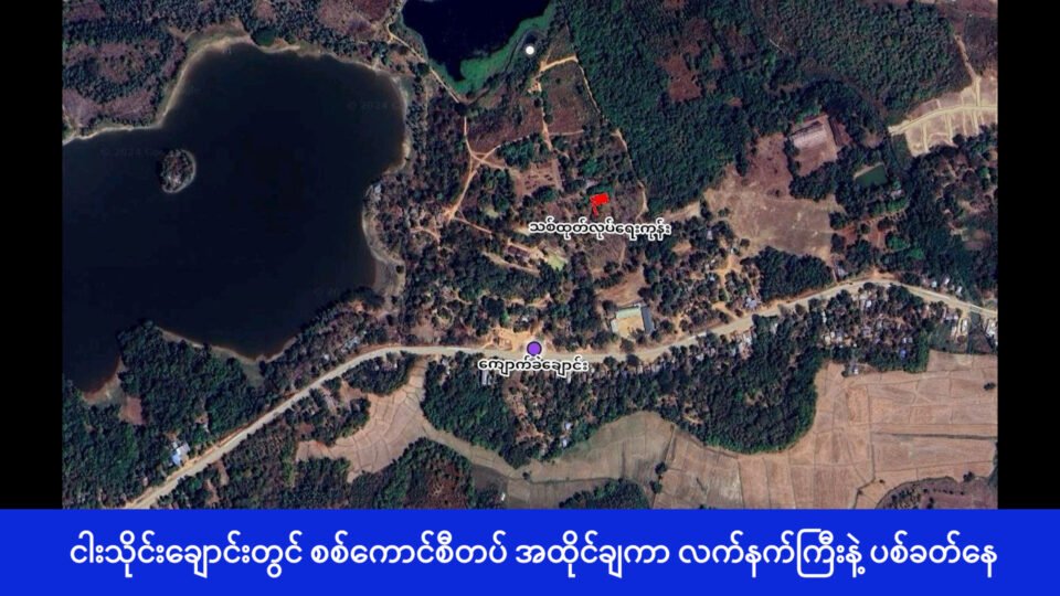 ဧရာဝတီတိုင်း ပုသိမ်ခရိုင် ရေကြည်မြို့နယ် ငါးသိုင်းချောင်းမြို့ စစ်ကောင်စီက တပ်အထိုင်ချကာ လက်နက်ကြီးတွေနဲ့ ရမ်းသန်းပစ်ခတ်နေလို့ ဒေသခံပြည်သူတွေအနေနဲ့ ထိန့်လန့်နေကြတယ်လို့ ငါးသိုင်းချောင်းမြို့ဒေသခံတွေက အာရက္ခတိုင်းမ်စ်ကို ပြောပါတယ်။