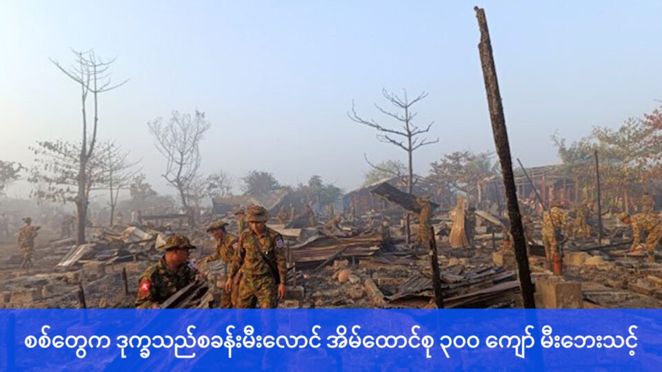 ရက္ခိုင်ပြည် စစ်တွေမြို့ ခေါင်းဒုက္ကာကျေးရွာရှိ ဒုက္ခသည်စခန်းကို မတ်လ ၁ ရက် မနက် ၁ နာရီ ၁၅ မိနစ်က မီးလောင်ခဲ့လို့ အိမ်ထောင်စု ၃၀၀ ကျော် မီးဘေးသင့်ဒဏ်ခံနေရတယ်လို့ စစ်တွေဒေသခံတွေက ပြောပါတယ်။