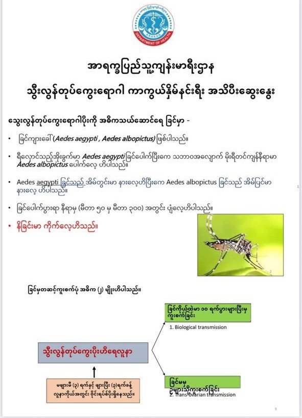 သွေးလွန်တုတ်ကွေးရောဂါ ကြိုတင်ကာကွယ်အတွက် အာရက္ခပြည်သူ့ကျန်းမာရေးဌာနကနေပြီး ကာကွယ်ရေး အသိပညာပေးတွေ ဆက်လက် လုပ်ကိုင်နေတယ်လို့လည်း သိရပါတယ်။