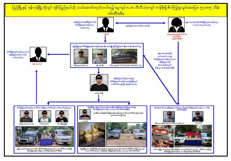 စစ်ဆေးချက်တွေအရ ရှမ်းပြည်ကနေ ရက္ခိုင်ပြည်ကို မူးယစ်ဆေးဝါး တင်ပို့ရောင်းချသူမှာ ရှမ်းပြည်နယ်၊ ကျေးသီးမြို့နယ်၊ ဝမ်းဟိုင်းနေ ထွန်းစီနဲ့ဇနီး နန်းရွှေရင် (ခ) နန်းမိုင်းခမ်း (ခ) နန်းခမ်းကြာတို့ဖြစ်ပြီး ဝမ်ဟိုင်းကနေ ပြည်မြို့ကို သယ်ဆောင်ကာ အဲဒီကနေတဆင့် ရက္ခိုင်ပြည်ကို ပြန်လည်တင်ပို့မှာဖြစ်ပါကြောင်း ဆိုပါတယ်။