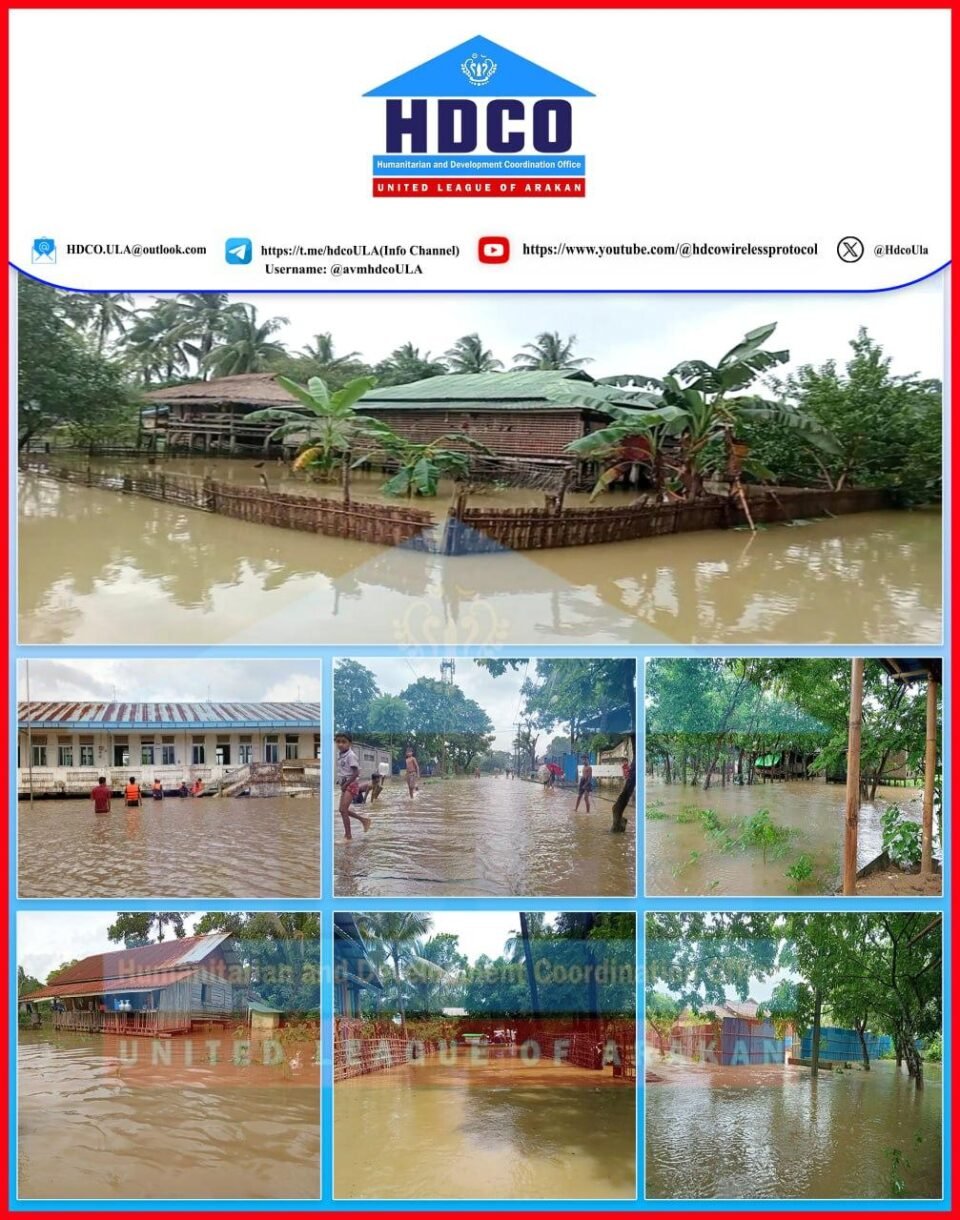 ရက္ခိုင်ပြည်တွင် ၂၀၂၅ ခုနှစ် ဇွန်လကုန်က စတင်ပြီး မိုးသည်းထန်စွာ ရွာသွန်းလို့ လူဦးရေ ၁၂၀၀၀ ကျော် အရေးပေါ် အကူညီလိုနေတယ်လို့ သိရပါတယ်။
