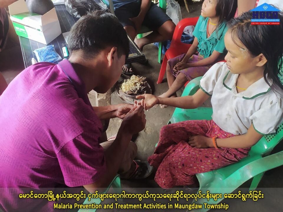 အဓိကအားဖြင့် လူနည်းစုဖြစ်တဲ့ မြိုလူမျိုးတွေ နေထိုင်တဲ့ ကျေးရွာတွေကို ကျန်းမာရေးဝန်ထမ်းတွေနဲ့ ပူးပေါင်းပြီး လူသားချင်းစာနာထောက်ထားရေးနှင့် ဖွံဖြိုးရေးဆိုင်ရာ ပူးပေါင်းဆောင်ရွက်ရေးရုံး HDCO က ငှက်ဖျားပိုး စစ်ဆေးတာတွေကို ဆောင်ရွက်ပေးကာ လူ ၁၀၀ မှာ ၁၇ ယောက်က ငှက်ဖျားပိုး တွေ့ရှိခဲ့ရတယ်လို့ ဆိုပါတယ်။