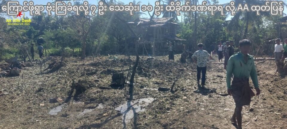 ရက္ခိုင်ပြည်၊ ကျောက်တော်မြို့နယ် ကြောင်ဖိုကျေးရွာကို အကြမ်းဖက် စစ်ကော်မရှင်က ဂျက်ဖိုက်တာနဲ့ ဗုံးကြဲတိုက်ခိုက်ခဲ့တာကြောင့် ၅ နှစ်အရွယ် ကလေးငယ် အပါအဝင် အပြစ်မဲ့ အရပ်သားပြည်သူ ၇ ဦးသေဆုံးပြီး ၁၀ ဦး ထိခိုက်ဒဏ်ရာ ရရှိခဲ့တယ်လို့ အာရက္ခတပ်တော် AA က နိုဝင်ဘာ ၂၈ ရက်နေ့မှာ ထုတ်ပြန်ထားပါတယ်။