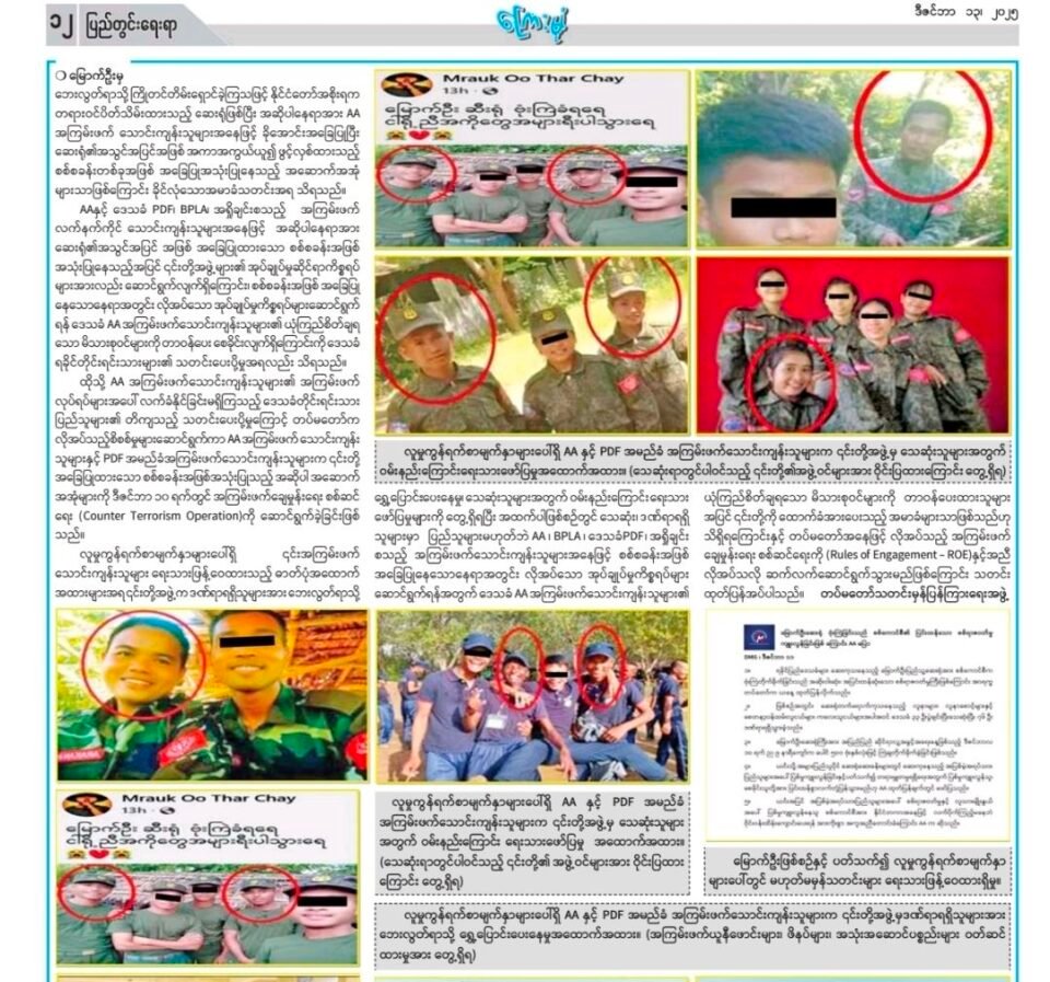 ရက္ခိုင်ပြည် မြောက်ဦးဆေးရုံဖြစ်စဉ်တွင် သေဆုံးခဲ့သူများမှာ အရပ်သားပြည်သူများမဟုတ်ပဲ AA နဲ့ PDF များသာ ဖြစ်တယ်လို့ စစ်ကော်မရှင်ရဲ့ သတင်းမှန်ပြန်ကြားရေးအဖွဲ့က ဒီဇင်ဘာလ ၁၂ ရက်မှာ ငြင်းဆိုခဲ့ပါတယ်။