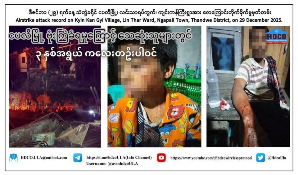 ရက္ခိုင်ပြည်၊ သံတွဲခရိုင်၊ ငပလီမြို့ လင်းသာရပ်ကွက် ဗုံးကြဲခံရမှုဖြစ်စဉ်ကြောင့် သေဆုံးသူများတွင် ၃ နှစ်အရွယ် ကလေးတဦးပါဝင်တယ်လို့ အာရက္ခပြည်သူ့ကျန်းမာရေးဌာန (HDCO) က ဒီဇင်ဘာ ၃၀ ရက်၊ ညပိုင်းမှာ ထုတ်ပြန်ခဲ့ပါတယ်။