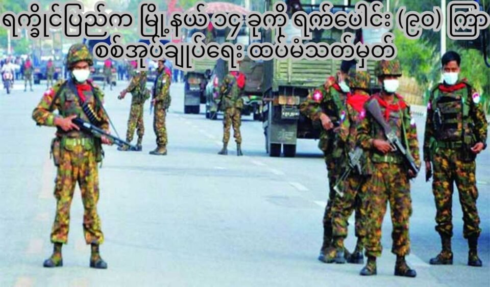 ရက္ခိုင်ပြည်က မြို့နယ် ၁၄ ခုကို ရက်ပေါင်း (၉၀) ကြာ စစ်အုပ်ချုပ်ရေး ထပ်မံသတ်မှတ်
