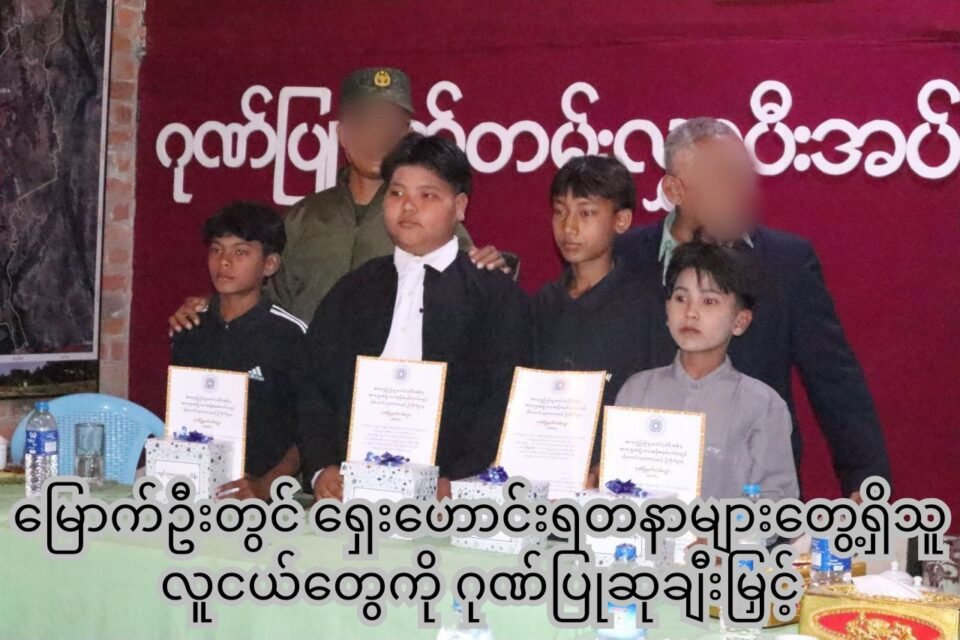 ရက္ခိုင်ပြည် မြောက်ဦးမြို့နယ်တွင် ရှေးဟောင်းရတနာများနဲ့ ငွေဒင်္ဂါးပြားများ တွေရှိခဲ့တဲ့ လူငယ်တွေကို အာရက္ခပြည်သူ့တော်လှန်ရေးအစိုးရက ဂုဏ်ပြုလွှာနဲ့ ဆုချီးမြှုင့်ခဲ့တယ်လို့ သိရပါတယ်။
