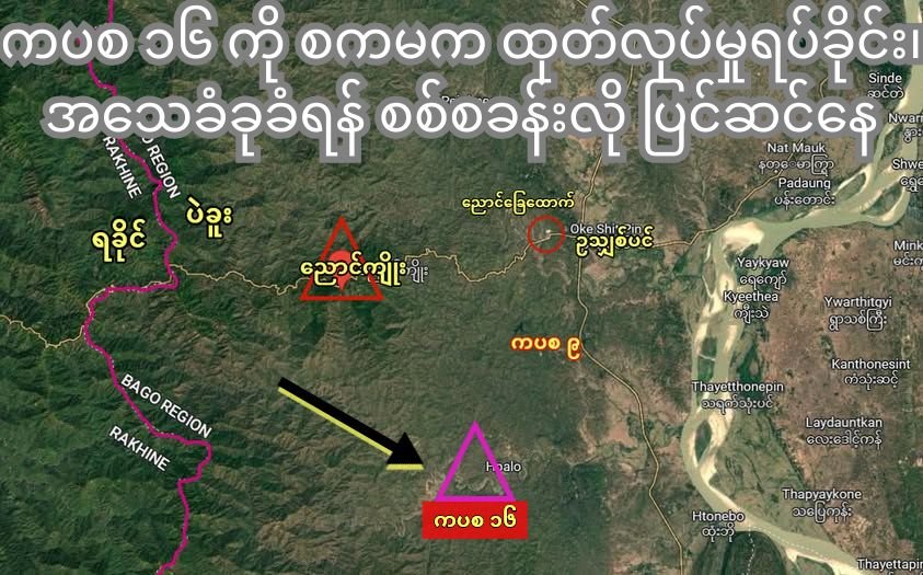 “ ကပစ ၁၆ တခုလုံးကို ထုတ်လုပ်မှု ရပ်ဆိုင်းခိုင်းလိုက်ပြီ၊ AA က ကပစ ၁၆ နားက ကာကင်းစခန်း ၅ ခု ရပြီးတဲ့နောက်မှာ သူတို့က (စစ်ကော်မရှင်) အသေခံ ခုခံခိုင်းထားတယ်။ စစ်သားမိသားစုဝင်တွေကိုလည်း ပေးမသွားတော့ဘဲ အလှည့်ကျ ကင်းစောင့်ခိုင်းနေတယ်”  လို့ စစ်ရေးသတင်းရင်းမြစ်တဦးက အာရက္ခတိုင်းမ်စ်ကို ပြောပါတယ်။
