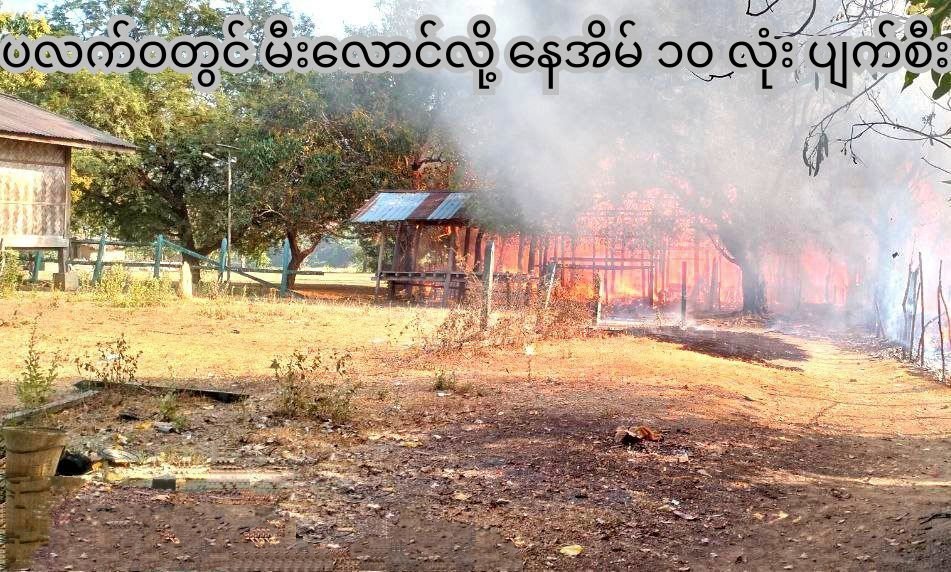 ပလက်ဝမြို့နယ်၊ တွီကင်းဝရွာတွင် ဖေဖော်ဝါရီလ ၂၁ ရက် နေ့လည်က မီးလောင်မှုဖြစ်ပွားခဲ့လို့ နေအိမ် ၁၀ လုံး ပျက်စီးသွားတယ်လို့ သိရပါတယ်။