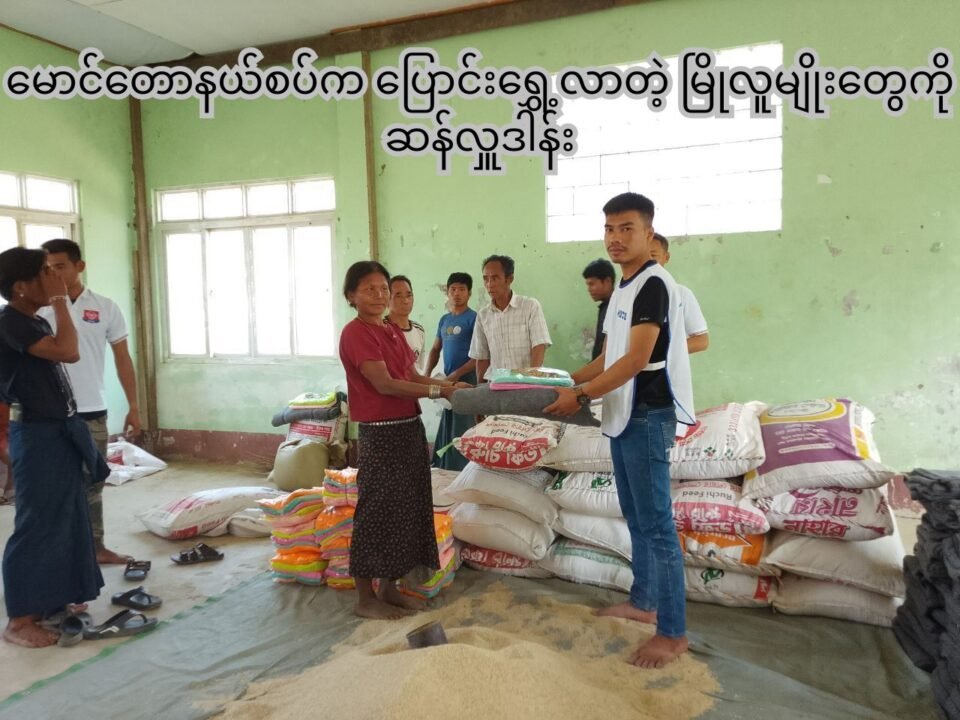 ရက္ခိုင်ပြည် မောင်တောမြို့နယ် မြောက်ပိုင်း နယ်စပ်ဒေသတွင် နေထိုင်ကြတဲ့ မြိုလူမျိုးတွေဟာ လုံခြုံရေးကြောင့် ဘေးလွတ်ရာကို ပြောင်းရွှေ့လာကြပြီး အဆိုပါ ပြောင်းရွှေ့လာတဲ့ မြိုလူမျိုးတွေကို ရက္ခိုင်အမျိုးသားအဖွဲ့ချုပ် ခရိုင်ပါတီကော်မတီကဦးဆောင်ပြီး ဆန်လှူဒါန်းခဲ့တယ်လို့ သိရပါတယ်။