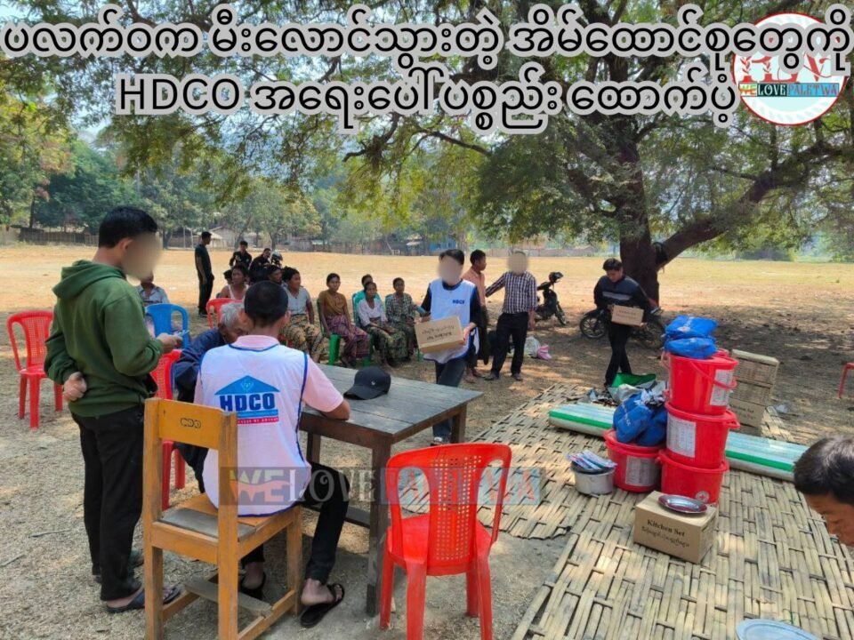 ပလက်ဝက မီးလောင်သွားတဲ့ အိမ်ထောင်စုတွေကို HDCO အရေးပေါ် ပစ္စည်း ထောက်ပံ့
