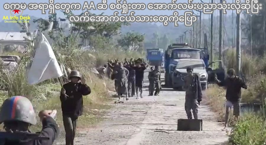 “ ဗိုလ်ကြီးတွေ ပြောပုံအရတော့ AA က အောက်လမ်းနဲ့ လုပ်တာလို့ ပြောတာပဲ။ စစ်တပ်ဘက်က ဂုဏ်တော်ကိုးပါးတွေ မရွတ်လို့လား ဘာတုန်းတော့ မသိဘူး။ ဟိုဘက်က အောက်လမ်းကောင်းလို့လား အဲလိုမျိုးတော့ ပြောသံကြားတယ်” လို့ စစ်ကော်မရှင်တပ်က ထွက်ပြေးလွတ်မြောက်လာသူ ကိုသဲဇော်အောင်က RFA နဲ့ အင်တာဗျူးမှာ ဖြေဆိုခဲ့ပါတယ်။