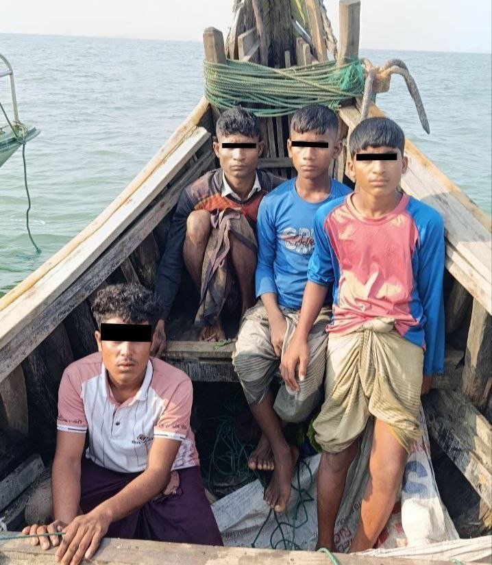 ရက္ခိုင်ပြည်ရေပိုင်နက်အတွင်း ဝင်ရောက်ငါးခိုးဖမ်းနေတဲ့ ဘင်္ဂလားဒေ့ရှ်နိုင်ငံသား ၄ ဦးကို မတ်လ ၁၇ က အာရက္ခကမ်းခြေစောင့်လုံခြုံရေးတပ်ဖွဲ့ဝင်များက ဖမ်းဆီးရမိခဲ့တယ်လို့ သိရပါတယ်။