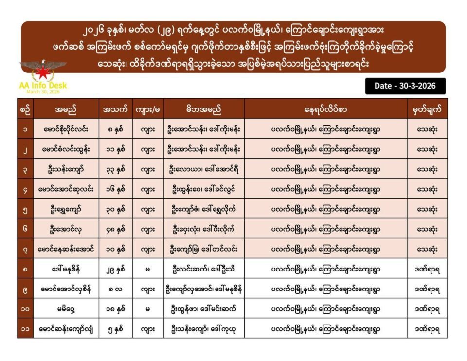 အာရက္ခတိုင်းမ်စ် (၃၀ မတ် ၂၀၂၆)
