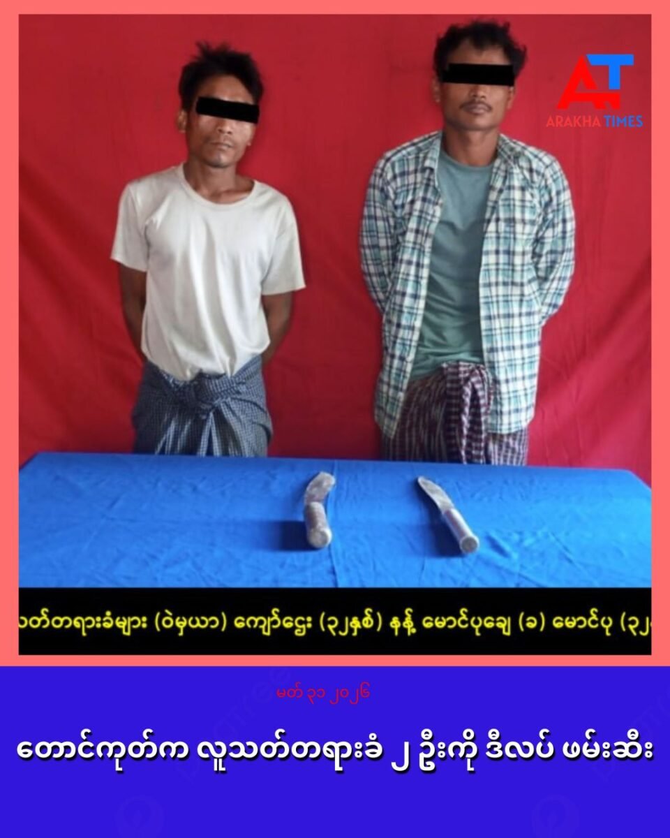 ရက္ခိုင်ပြည် တောင်ကုတ်မြို့နယ် နတ်မော်အုပ်စု ရွှေတောင်သာရွာ သျှမ်းတဂူကျွန်းတွင် လူသတ်ခဲ့တဲ့ တရားခံ ၂ ဦးကို မတ်လ ၂၉ ရက်တွင် ဒီလပ် က ဖမ်းဆီးရမိခဲ့တယ်လို့ သိရပါတယ်။