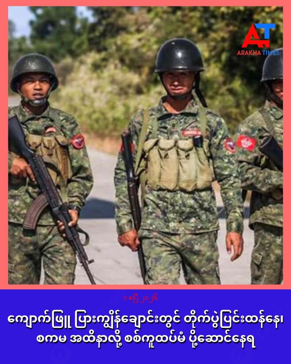 ရက္ခိုင်ပြည် ကျောက်ဖြူမြို့နယ် ပြားကျွိန်ချောင်း အနီးတွင် အာရက္ခတပ်တော်နဲ့ စစ်ကော်မရှင်တို့ တိုက်ပွဲတွေပြင်းထန်နေပြီး စစ်ကော်မရှင်တပ် အထိနာနေတယ်လို့ စစ်ကူ ထပ်မံပို့ဆောင်နေတယ်လို့ သိရပါတယ်။