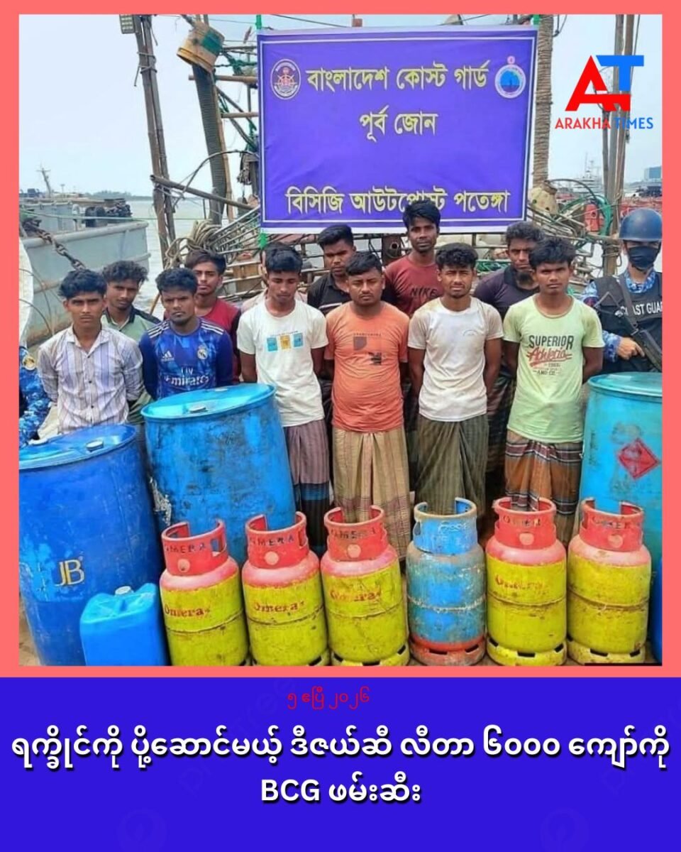 ရက္ခိုင်ပြည်ကို ပို့ဆောင်ရန် ဘင်္ဂလားဒေ့ရှ်ကနေ ဒီဇယ်ဆီ လီတာ ၆၀၀၀ ကျော်ကို ဘင်္ဂလားဒေ့ရှ်ကမ်းခြေစောင့်တပ်က ဧပြီလ ၄ ရက်က ဖမ်းဆီးခဲ့တယ်လို့ သိရပါတယ်။