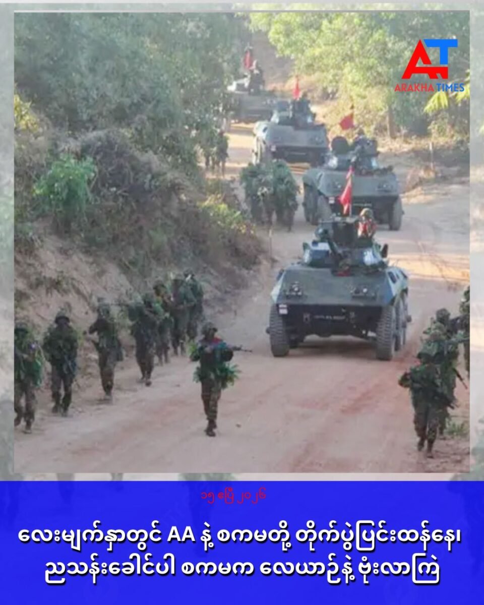ဧရာဝတီတိုင်း လေးမျက်နှာမြို့နယ်မှာ အာရက္ခတပ်တော်နဲ့ စစ်ကော်မရှင်တပ်တို့ တိုက်ပွဲပြင်းထန်နေပြီး စစ်ကော်မရှင်က ညသန်းခေါင်အချိန်မှာလည်း လေကြောင်းကနေ ဗုံးကြဲတိုက်ခိုက်နေတယ်လို့ သိရပါတယ်။