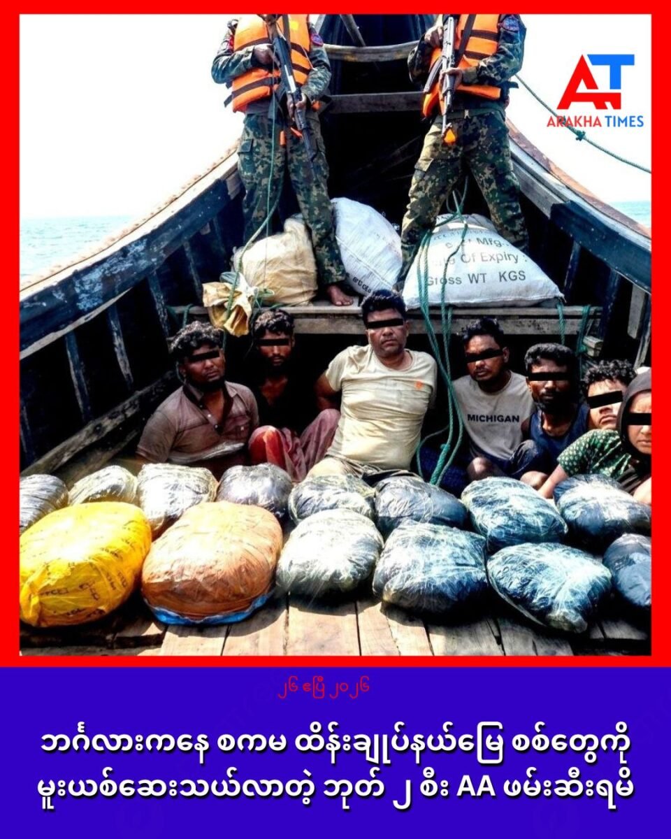 ဘင်္ဂလားဒေ့ရှ်နိုင်ငံကနေ စစ်ကော်မရှင် ထိန်းချုပ်ထားတဲ့ စစ်တွေမြို့ကို မူးယစ်ဆေးများ သယ်ဆောင်လာတဲ့ ဘုတ် ၂ စီးကို ဧပြီလ ၂၄ ရက်က အာရက္ခတပ်တော်ရဲ့ ကမ်းခြေစောင့်တပ်ဖွဲ့ဝင်များက ဖမ်းဆီးရမိခဲ့တယ်လို့ သိရပါတယ်။