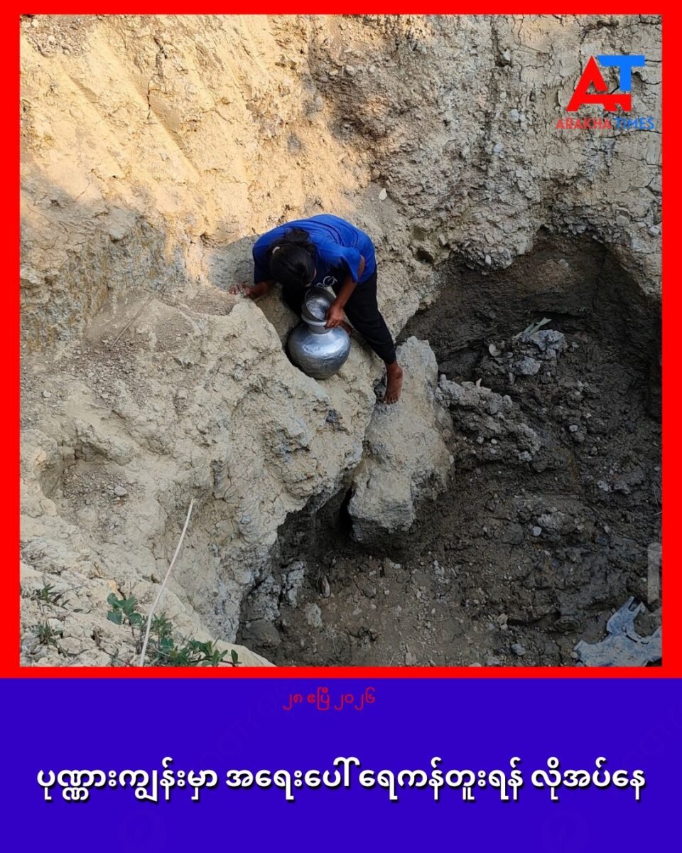 “ ကျနော်တို့ ရခိုင်မျိုးချစ်လူငယ်ဖောင်ဒေးရှင်းကနေပြီးတော့ ပုဏ္ဏားကျွန်းမြို့နယ်ထဲက ရေရှားပါးပြီး သောက်သုံးရေ အခက်အခဲဖြစ်နေတဲ့ camp တွေမှာ ရေအခမဲ့ ဖြန့်ဝေပေးနေတာတွေ ရှိတယ်ဗျ။ နှစ်စဉ်နှစ်တိုင်း ဒီ ပုဏ္ဏားကျွန်းမြို့နယ်ထဲမှာ‌ နွေရာသီ ရောက်လာတာနဲ့အမျှ ရေရှားပါးတာ သောက်သုံးရေ ခက်ခဲတာ နှစ်တိုင်း ကြုံတွေ့ရတယ် ခင်ဗျ။ ဒီအခက်အခဲကို ကျော်ဖြတ်နိုင်ဖို့ စစ်ရှောင် camp လူဦးရေများတဲ့ တနေရာမှာ ရေတွင်းရေကန် တူးဖော်နိုင်ဖို့ ကြိုးစားဖို့ ရှိတယ်ဗျ။ ရေတွင်းရေကန် တူးဖော်နိုင်ဖို့ အလှူရှင်တွေ လိုအပ်နေတယ်။ လက်ရှိအချိန်ထိတော့ အလှူရှင် နည်းပါးနေသေးတယ်” လို့ ကိုမျိုးချစ်က အာရက္ခတိုင်းမ်စ်ကို ပြောပါတယ်။