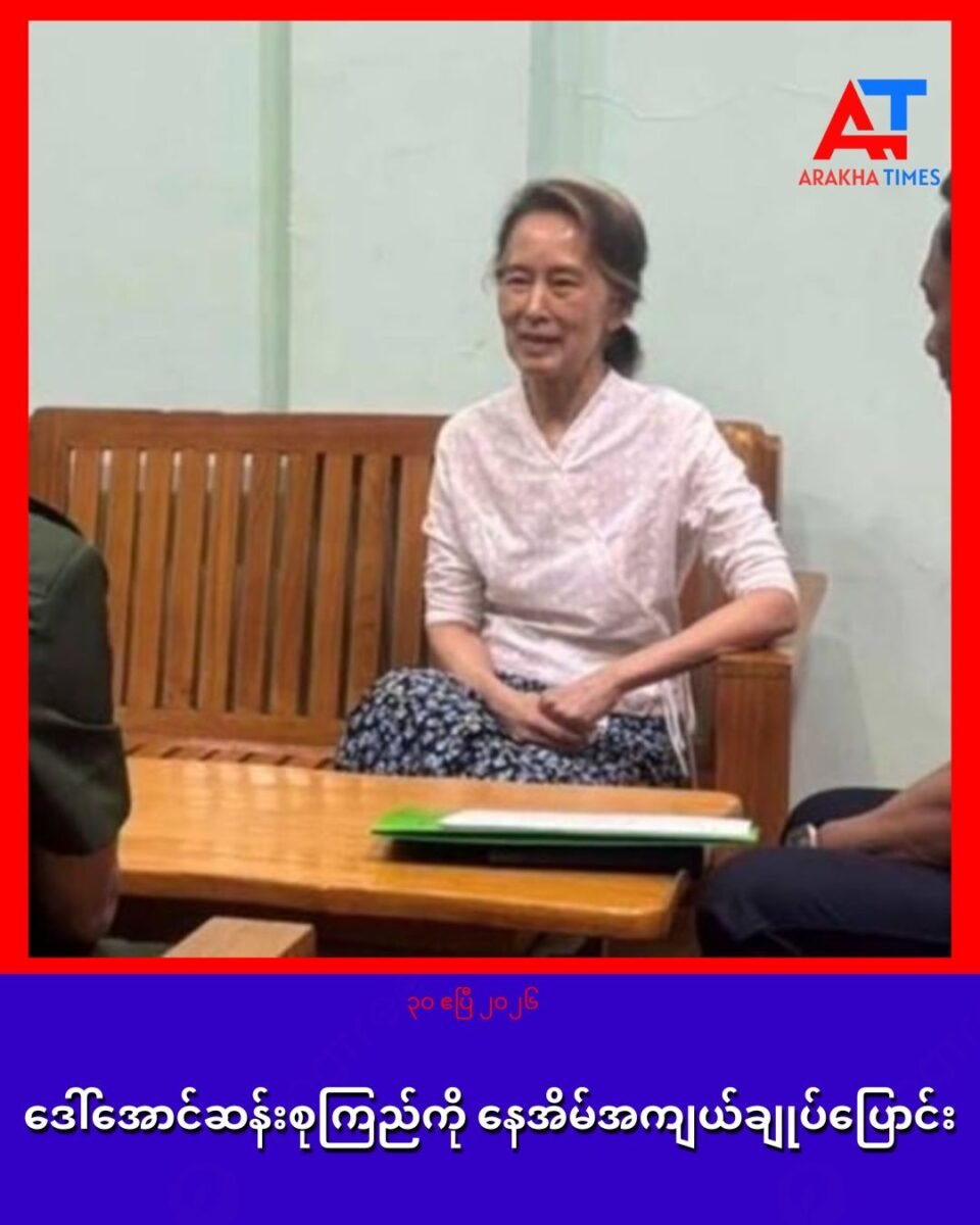 နိုင်ငံတော်၏ အတိုင်ပင်ခံပုဂ္ဂိုလ် ဒေါ်အောင်ဆန်းစုကြည်ကို ကျန်ရှိနေတဲ့ ပြစ်ဒဏ်များ နေအိမ်တွင် ဆက်လက်ကျခံရန် ပြောင်းလဲ သတ်မှတ်ပေးလိုက်တယ်လို့ မြန်မာ့အသံရုပ်မြင်သံကြားကနေ ကြေညာသွားပါတယ်။